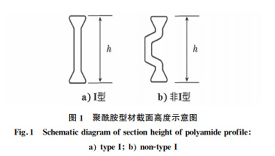 聚酰胺型材根據(jù)截面結(jié)構(gòu)分為I型和非I型兩 類[2],如圖1所示,其中h為聚酰胺型材截面高度。